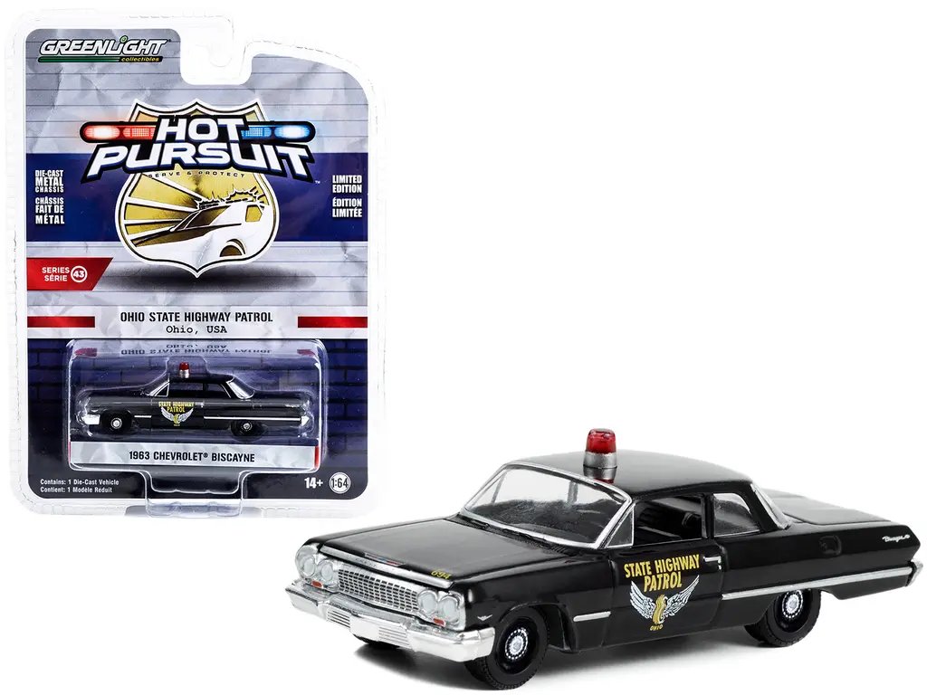 1963 Chevrolet Biscayne Ohio State Highway Patrol Diecast Model - Hot Pursuit Series 43 by Greenlight
