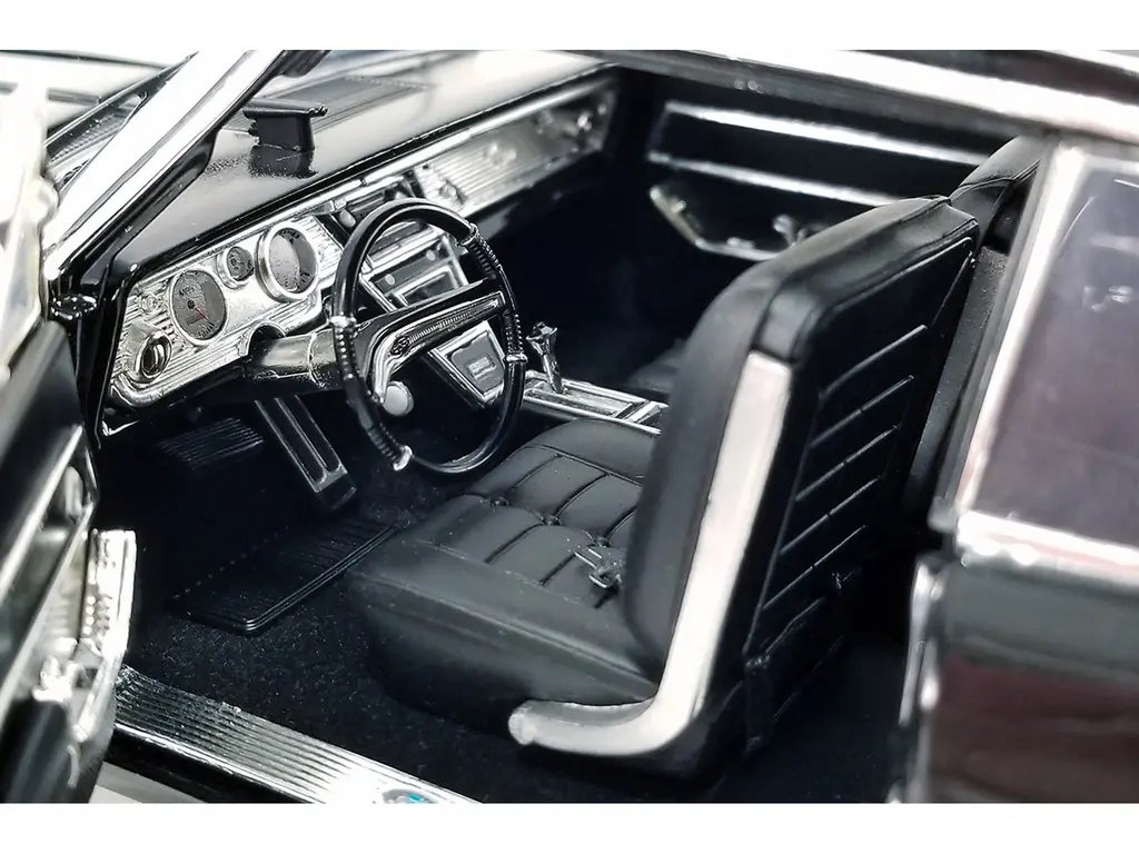 The model boasts an exquisite black finish that mirrors the sleek, timeless design of the classic Riviera. Its glossy exterior is complemented by chrome accents, perfectly replicating the car’s distinctive grille and trim. The attention to detail extends to the interior, where you’ll find a faithfully recreated dashboard, plush seating, and authentic carpeting, all designed to transport you back to the golden age of American automobiles.