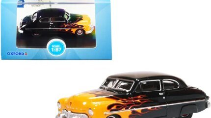 1949 Mercury Coupe “Hot Rod” Black and Yellow with Flames 1/87 (HO) Scale Diecast Model Car by Oxford Diecast