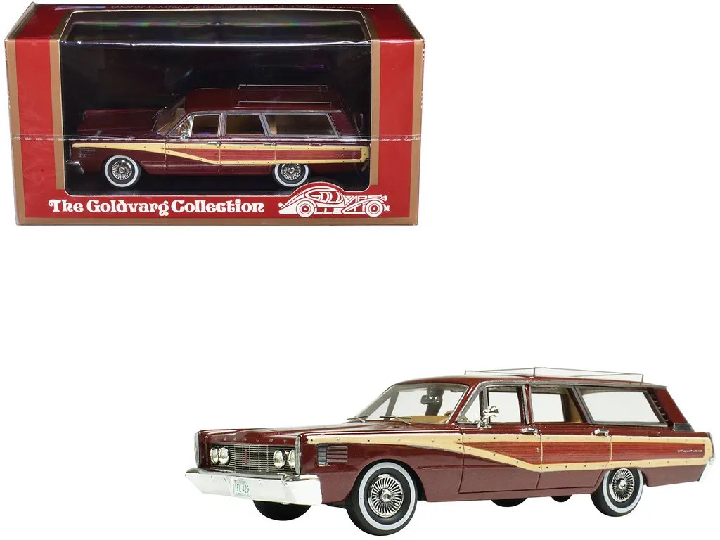 Limited Edition 1965 Mercury Station Wagon 1/43 Model Car – Burgundy Metallic with Wood Panels by Goldvarg Collection