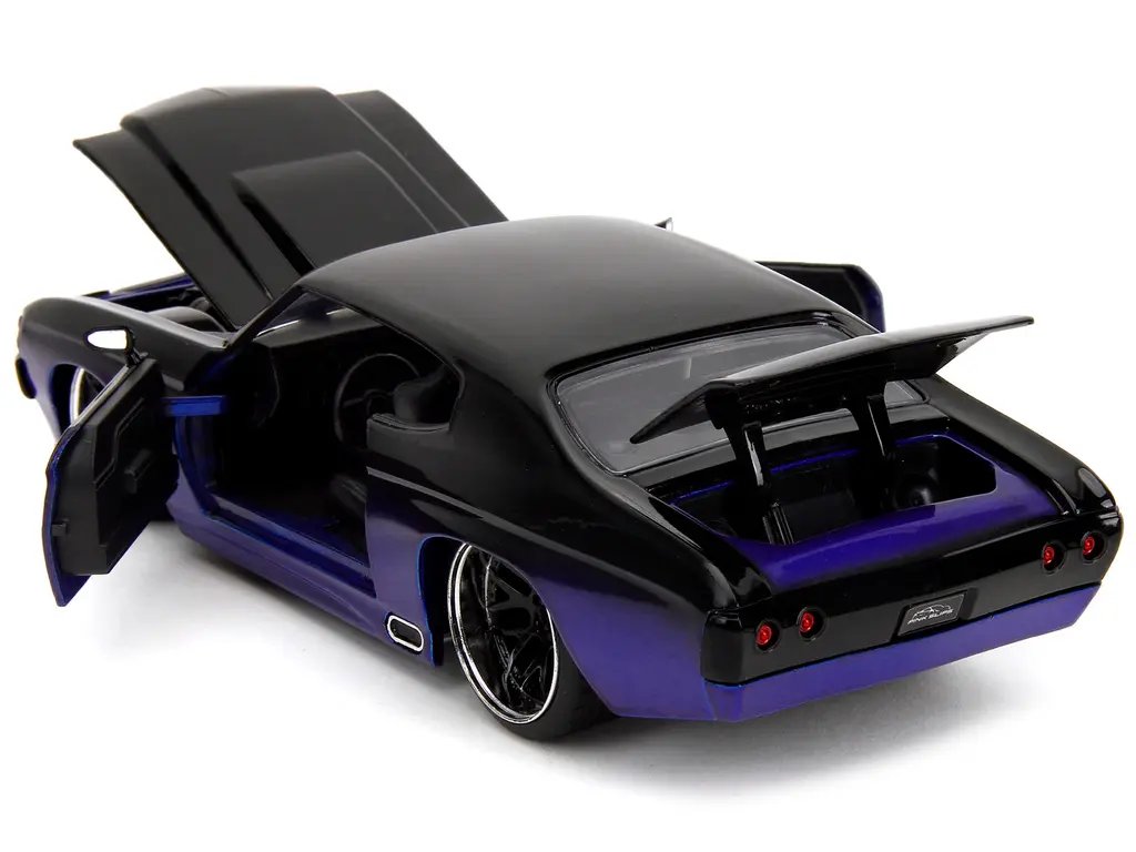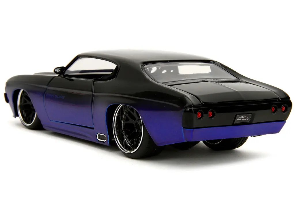 Introducing the 1971 Chevrolet Chevelle SS Black and Blue “Pink Slips” Series 1/24 Diecast Model Car by Jada, a stunning tribute to one of the most iconic muscle cars in automotive history. This meticulously crafted diecast model captures the essence of the legendary Chevelle SS, renowned for its raw power and classic design.