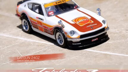 Datsun 240Z White with Stripes “Eneos” SEMA (2018) 1/64 Diecast Model Car by Inno Models