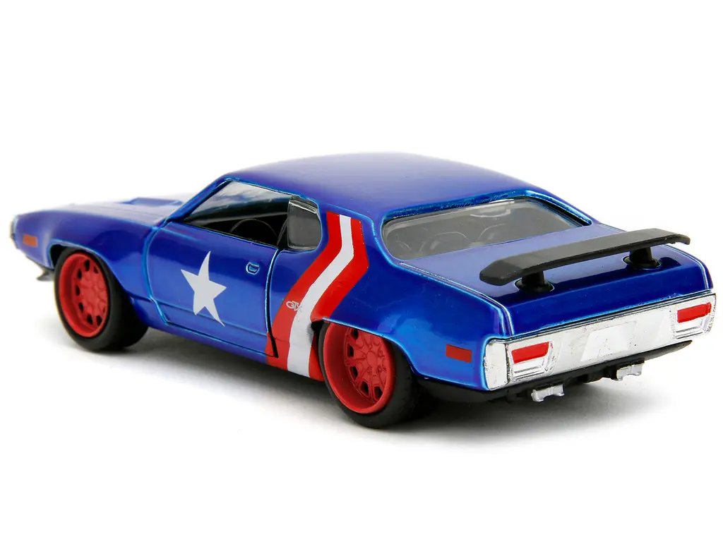 1972 Plymouth GTX Candy Blue with Captain America Figure – Jada Hollywood Rides 1/32 Diecast Model