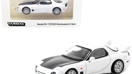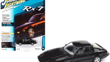 The 1974 Mazda RX-3 is a masterpiece of automotive history, renowned for its sleek lines and rotary engine prowess. This diecast model captures every detail with precision, from the aerodynamic contours to the authentic white paint job, accentuated by striking red stripes and graphics that evoke a sense of speed and power. The model’s meticulous craftsmanship is evident in its realistic features, including opening doors, a detailed interior, and rubber tires, offering a tactile experience that brings the car to life.
