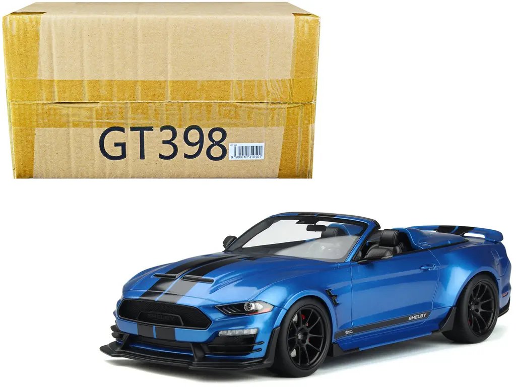 In summary, the 2022 Shelby Super Snake Speedster Convertible Blue Metallic with Black Stripes 1/18 Model Car by GT Spirit is more than just a model—it’s a tribute to the spirit of speed and style. Whether you’re a dedicated collector or a fan of high-performance vehicles, this model car is a perfect addition to your collection, offering a blend of beauty, history, and craftsmanship that is truly unparalleled.