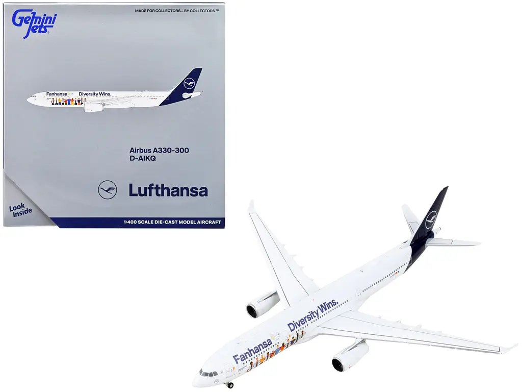 Introducing the meticulously crafted Airbus A330-300 Commercial Aircraft “Lufthansa – Fanhansa Diversity Wins” 1/400 Diecast Model Airplane by GeminiJets, a stunning tribute to aviation excellence and cultural diversity. This exquisite model captures the essence of Lufthansa’s commitment to inclusivity, showcased through the vibrant “Fanhansa Diversity Wins” livery, a celebration of unity and global harmony.