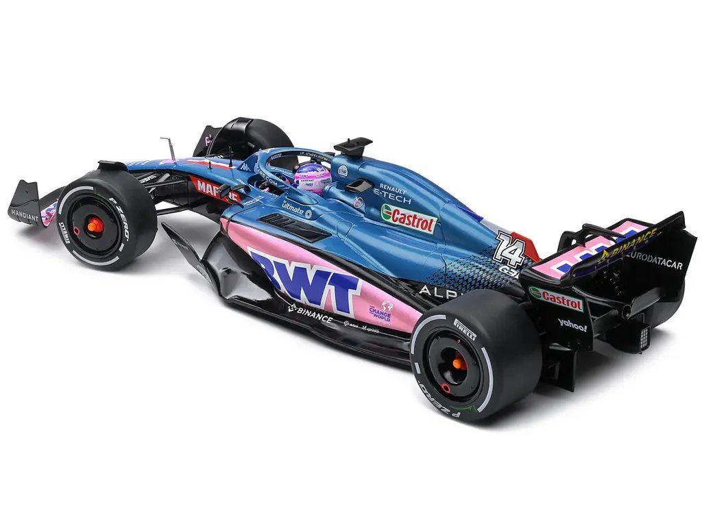 The Alpine A522 model features a finely detailed cockpit, complete with a miniature Fernando Alonso figure, capturing the spirit and determination of the two-time World Champion. The intricate suspension system, aerodynamic elements, and Pirelli tires are all expertly crafted, providing a realistic representation of the car’s engineering marvels. The model’s diecast construction ensures durability and a premium feel, making it a standout piece in any collection.