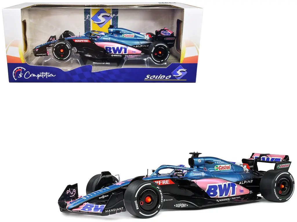 Buy Alpine A522 #14 Fernando Alonso BWT F1 Monaco GP 2022 1/18 Diecast Model by Solido