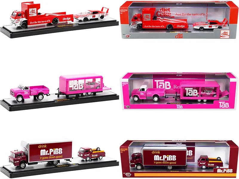 Auto Haulers “3 Sodas” Set of 3 pieces Release 12 Limited Edition to 7400 pieces Worldwide 1/64 Diecast Models by M2 Machines