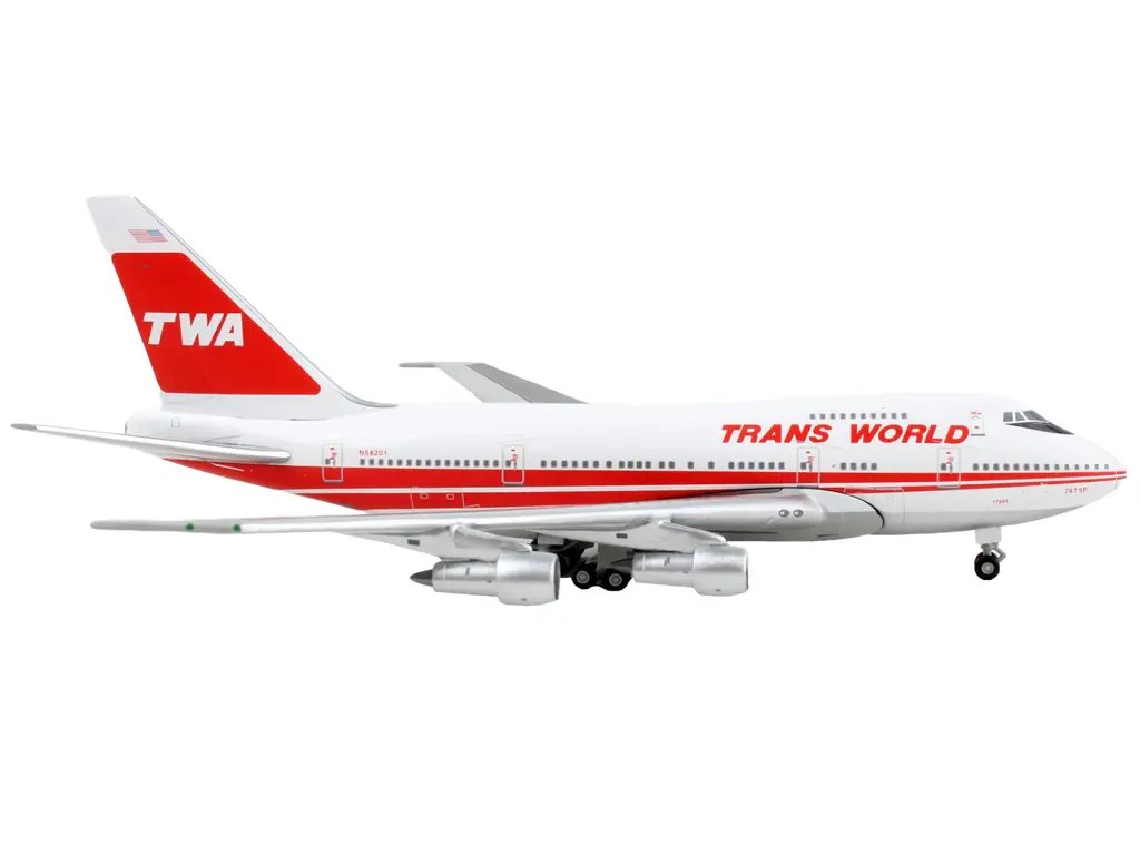 Introducing the Boeing 747SP Commercial Aircraft “Trans World Airlines – Boston Express” White with Red Stripes 1/400 Diecast Model Airplane by GeminiJets, a stunning tribute to aviation history and a must-have for collectors and enthusiasts alike. This meticulously crafted model captures the essence of the iconic Boeing 747SP, renowned for its unique design and historical significance in long-haul aviation.