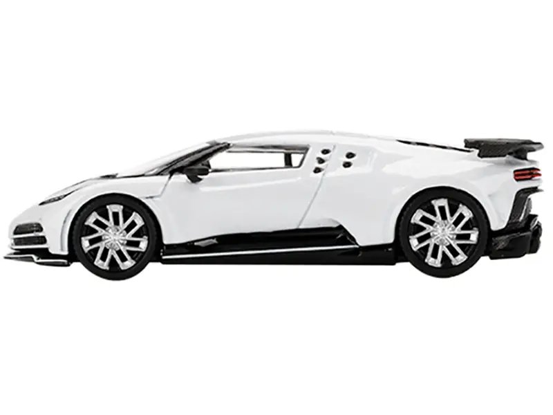 Every detail of this 1/64 scale model is rendered with precision, from the aerodynamic contours of the body to the intricate black accents that highlight its aggressive yet elegant aesthetic. The striking white finish exudes sophistication, while the contrasting black details on the grille, wheels, and rear diffuser add a dynamic edge, mirroring the real-life hypercar’s bold personality. True Scale Miniatures has spared no effort in replicating the Centodieci’s signature features, including its distinctive horseshoe grille, quad exhaust system, and rear wing, ensuring an authentic representation of Bugatti’s artistry.
