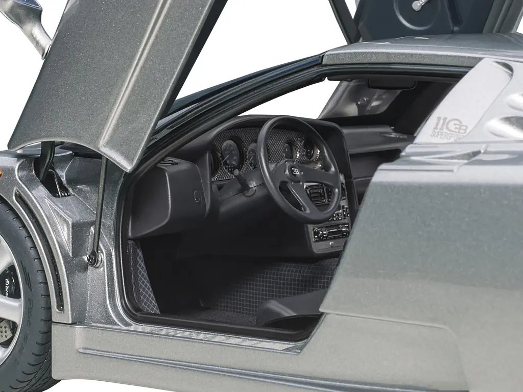 The Bugatti EB110 SS Super Sport Grigio Metalizzatto Silver Metallic with Silver Wheels 1/18 Model Car by Autoart is more than a model—it’s a work of art that combines precision engineering, stunning aesthetics, and historical significance. Perfect for discerning collectors, automotive enthusiasts, or anyone with an appreciation for fine craftsmanship, this model delivers exceptional value as a timeless addition to any collection.