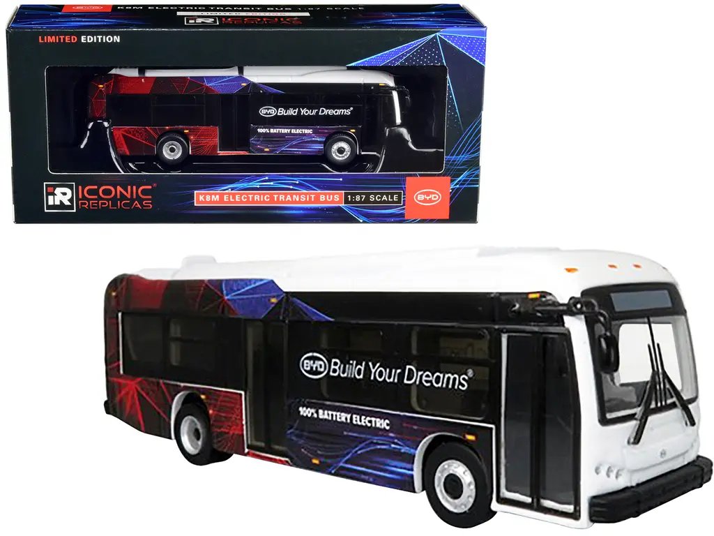 Elevate your collection with the BYD K8M Electric Transit Bus “Build Your Dreams” Corporate Livery Limited Edition 1/87 (HO) Diecast Model by Iconic Replicas—a celebration of design, sustainability, and the power of dreams.