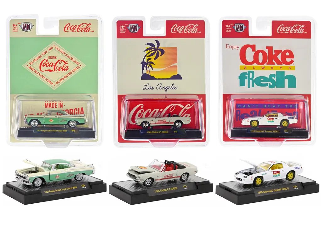 Introducing the “Coca-Cola” Set of 3 Pieces Release 29 Limited Edition by M2 Machines, a must-have for collectors and enthusiasts alike. This exclusive collection features meticulously crafted 1/64 diecast model cars, each embodying the timeless allure of Coca-Cola’s iconic brand. With only 5,250 sets available worldwide, this limited edition release is a rare gem that promises to elevate any collection.