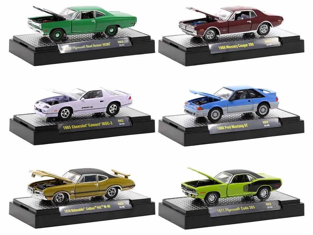 “Detroit Muscle” Set of 6 Cars IN DISPLAY CASES Release 62 Limited Edition to 8400 pieces Worldwide 1/64 Diecast Model Cars by M2 Machines