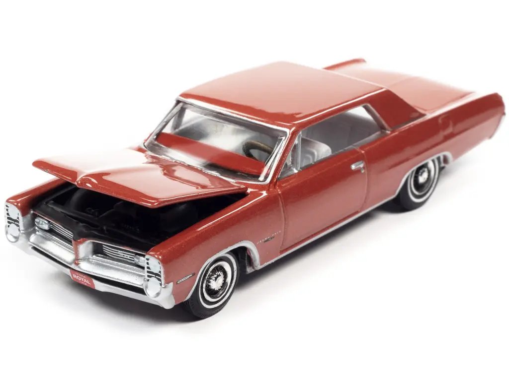 Introducing the 1964 Pontiac Grand Prix Royal Bobcat Sunfire Red Metallic “Vintage Muscle” Limited Edition 1/64 Diecast Model Car by Auto World—a must-have collectible for car enthusiasts and diecast aficionados alike. This meticulously crafted model captures the essence of American muscle car heritage, offering a miniature yet powerful representation of the iconic 1964 Pontiac Grand Prix.
