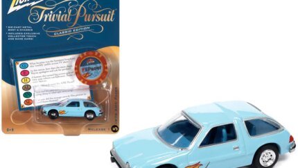1976 AMC Pacer Light Blue Flames Diecast Model – Johnny Lightning 2023 Trivial Pursuit Pop Culture 1/64