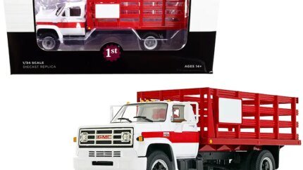 Authentic GMC 6500 Stake Truck 1/34 Diecast Model by First Gear – White & Red Collectible
