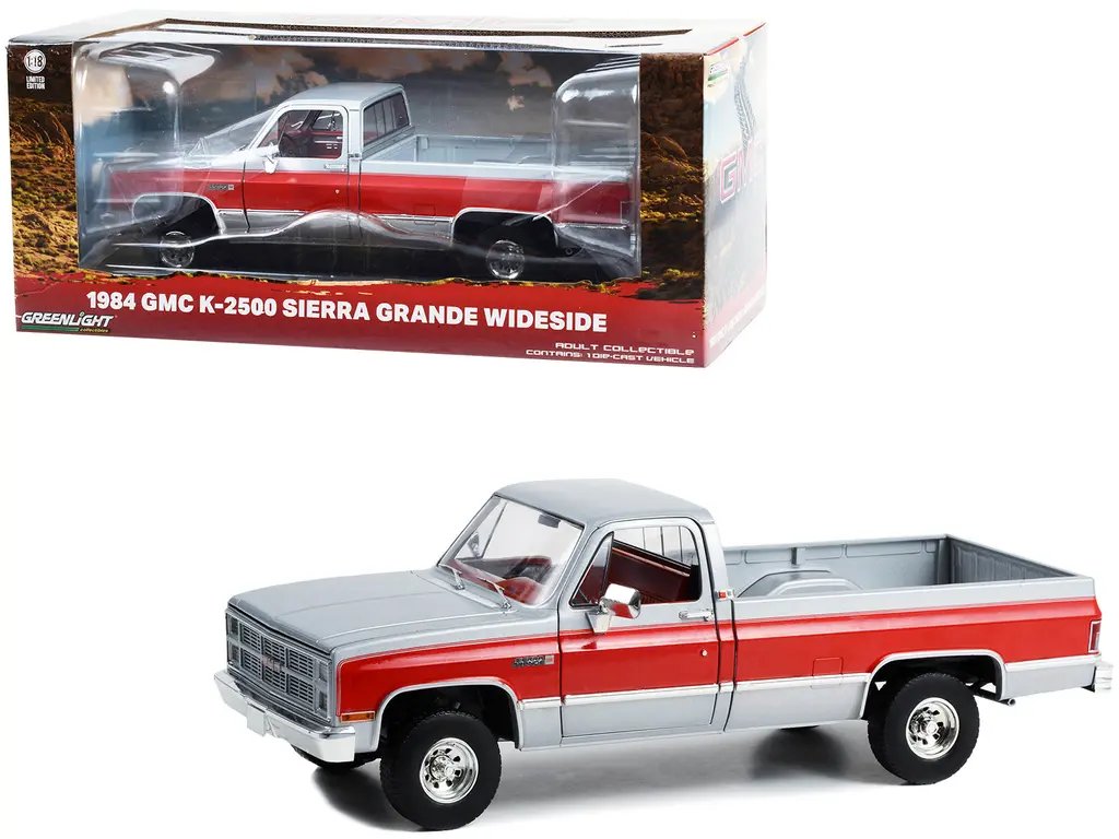 1984 GMC K-2500 Sierra Grande Wideside Pickup 1/18 Diecast Model – Silver & Red by Greenlight