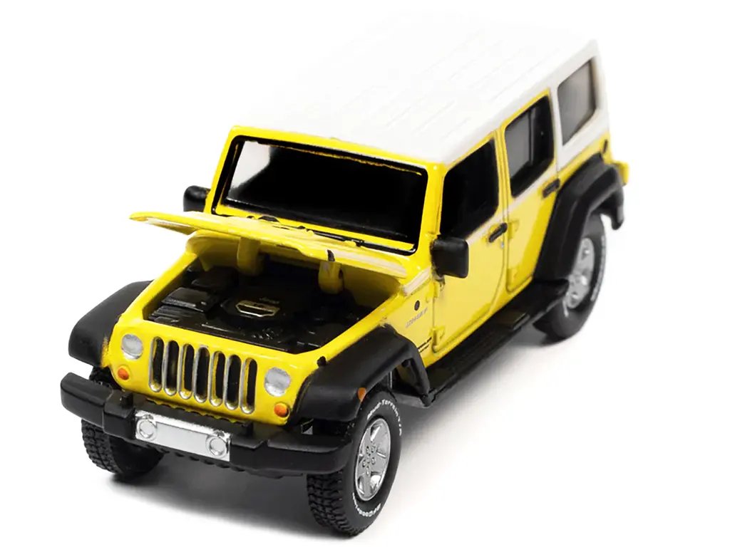 Embrace the spirit of adventure and the allure of exclusivity with the 2017 Jeep JK Wrangler Chief Edition Acid Yellow with White Top “Sport Utility” Series Limited Edition 1/64 Diecast Model Car by Auto World. It’s not just a model; it’s a celebration of a legendary vehicle and a testament to the thrill of the open road.