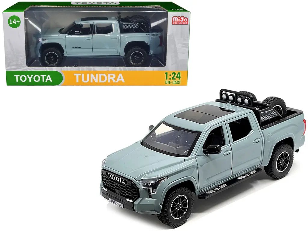 Home Pickup Trucks Models 2023 Toyota Tundra TRD 4×4 Lunar Rock Gray Diecast Model Car 1/24 with Sunroof & Wheel Rack