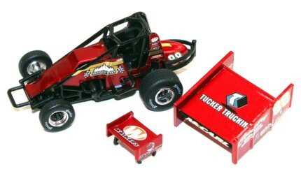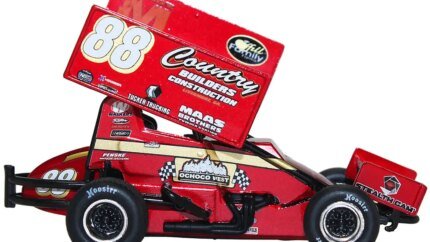 Every detail of Austin McCarl’s iconic #88 sprint car has been faithfully reproduced in this 1/50 scale diecast model. From the vibrant “Country Builders Construction” livery to the aerodynamic winged design, this model is a testament to precision engineering and attention to detail. The striking graphics and sponsor logos are expertly applied, ensuring that this model is as authentic as it is eye-catching.