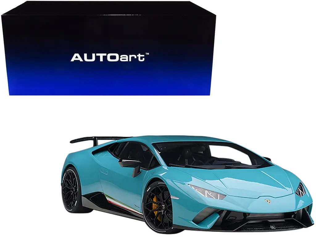 - Brand new 1/12 scale car model of Lamborghini Huracan Performante Blu Glauco / Solid Blue with Black Wheels model car by Autoart.