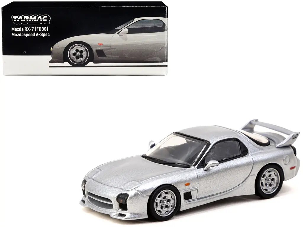 Whether you’re a die-hard Mazda fan, a diecast model collector, or someone who appreciates finely crafted miniatures, the Mazda RX-7 (FD3S) Mazdaspeed A-Spec RHD Silver Stone Metallic “Global64” Series 1/64 Diecast Model Car by Tarmac Works offers unparalleled value. It’s a perfect blend of history, craftsmanship, and passion, making it a standout addition to any collection. Don’t miss the opportunity to own this exquisite piece of automotive heritage.