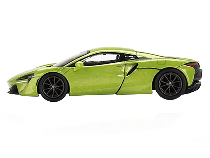 Crafted with meticulous attention to detail, this 1/64 scale replica showcases the Artura’s sleek aerodynamic design, finished in a stunning Flux Green Metallic paint that mirrors the vibrant energy of the original. The model features intricately detailed components, including the signature McLaren dihedral doors, aerodynamic bodywork, and the distinctive rear diffuser, all faithfully reproduced to reflect the car’s innovative engineering.