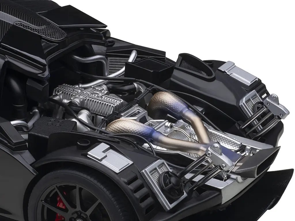 Crafted with meticulous attention to detail, the McLaren P1 model car is finished in a stunning Fire Black, a color that exudes sophistication and power. The sleek, aerodynamic lines of the P1 are faithfully reproduced, showcasing the car’s aggressive stance and futuristic design. The model’s exterior is enhanced with intricate features such as the signature dihedral doors, carbon fiber detailing, and the distinctive rear wing, all of which highlight the P1’s status as a marvel of modern engineering.