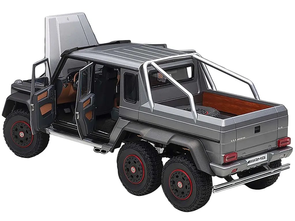 Introducing the Mercedes Benz G63 AMG 6×6 Designo Platinum Magno Gray Metallic with Carbon Accents 1/18 Model Car by Autoart—a masterpiece of miniature engineering that captures the essence of luxury, power, and exclusivity. This meticulously crafted model car is a tribute to the iconic G63 AMG 6×6, a vehicle renowned for its unparalleled off-road capabilities and opulent design.