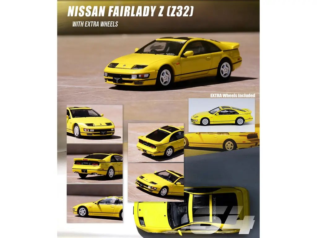 Introducing the Nissan Fairlady Z (Z32) RHD Yellow Pearlglow with Sunroof and Extra Wheels 1/64 Diecast Model Car by Inno Models—a stunning tribute to one of the most iconic sports cars of the 1990s. This meticulously crafted diecast model captures the essence of the legendary Fairlady Z, renowned for its sleek design and exhilarating performance.