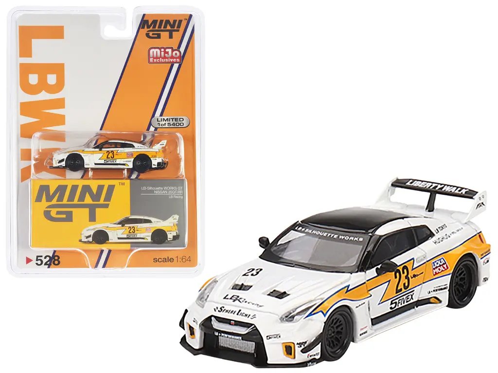 The Nissan LB-Silhouette Works GT 35GT-RR Ver.1 RHD #23 is a limited edition 1/64 diecast model car by True Scale Miniatures, featuring a striking white body with yellow stripes and “LB Racing” livery. Limited to just 5400 pieces worldwide, this model showcases meticulous detailing and high-quality craftsmanship, making it a must-have for collectors. Key features include its right-hand drive configuration, precise scale replication, and exclusive design, which collectively enhance its appeal and value as a collectible item.