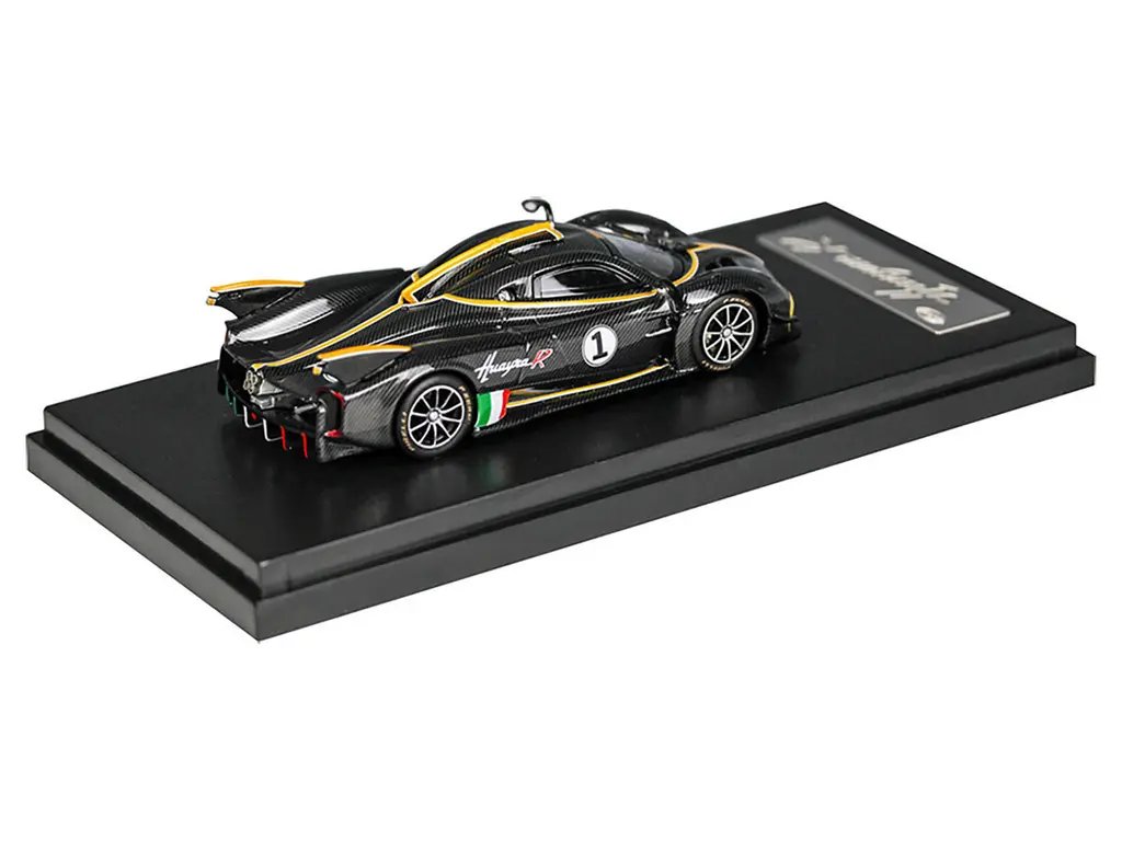 Pagani Huayra R #1 Carbon Black with Gold Accents 1/64 Diecast Model Car by LCD Models