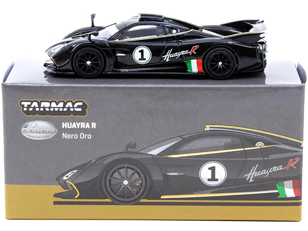 Introducing the Pagani Huayra R #1 Nero Oro Black “Global64” Series 1/64 Diecast Model Car by Tarmac Works—a masterpiece of miniature engineering that captures the essence of one of the most exclusive hypercars in the world. This exquisite diecast model is a must-have for collectors and automotive enthusiasts alike, offering a perfect blend of precision, luxury, and artistry.
