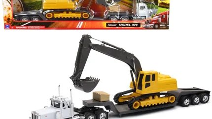 Peterbilt 379 Truck & Lowboy Trailer with Backhoe Diecast Model 1/32 – Long Haul Trucker Series by New Ray