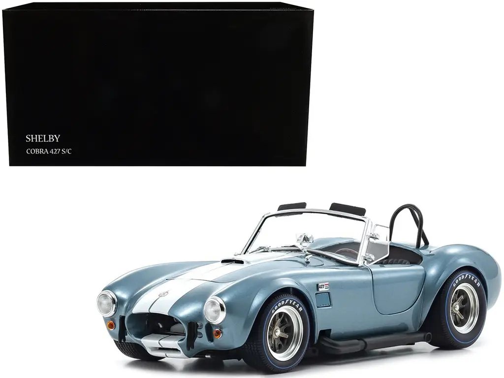 The Shelby Cobra 427 S/C Sapphire Blue Metallic with White Stripes 1/18 Diecast Model Car by Kyosho is more than a model—it’s a statement of passion for automotive excellence. Add this exquisite piece to your collection and relive the golden era of American muscle with every glance.