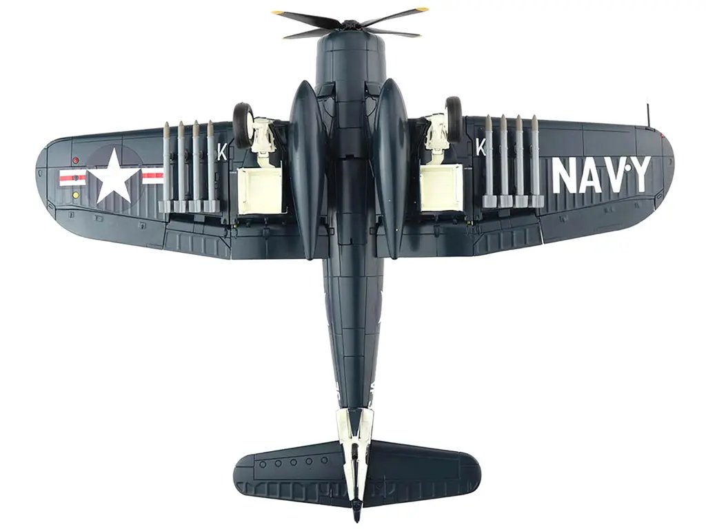 This model captures the iconic design and formidable presence of the F4U-4 Corsair, a legendary aircraft known for its distinctive gull-wing shape and powerful performance during World War II and the Korean War. The attention to detail is unparalleled, with authentic markings and insignia that replicate Hudner’s aircraft, White 205, down to the smallest feature. The model is constructed from high-quality diecast metal, ensuring durability and a premium feel, while the expertly applied paintwork brings the aircraft to life with historical authenticity.