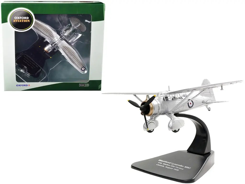 The Westland Lysander MK I War Plane 416 Malton NSC Factory Canada (August 1939) is a meticulously crafted 1/72 scale diecast model by Oxford Diecast, part of the “Oxford Aviation” series. This model replicates the iconic British army cooperation and liaison aircraft used during World War II, known for its short takeoff and landing capabilities. Key features include detailed construction with high-quality diecast materials, authentic markings, and a historically accurate design that captures the essence of the original aircraft. The model serves as a valuable collectible for aviation enthusiasts and history buffs, offering a tangible connection to a significant era in military aviation history. Its compact size and precise detailing make it an ideal display piece, highlighting the unique engineering and design of the Lysander.