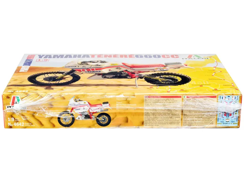 Embark on a journey through time and relive the glory of the legendary Paris-Dakar Rally with the Skill 5 Model Kit Yamaha Tenere 660 CC Motorcycle “Paris-Dakar” (1986) 1/9 Scale Model by Italeri. This meticulously crafted model kit is a tribute to the iconic Yamaha Tenere 660 CC, a motorcycle that conquered the harsh terrains of the 1986 rally, leaving an indelible mark in the annals of motorsport history.